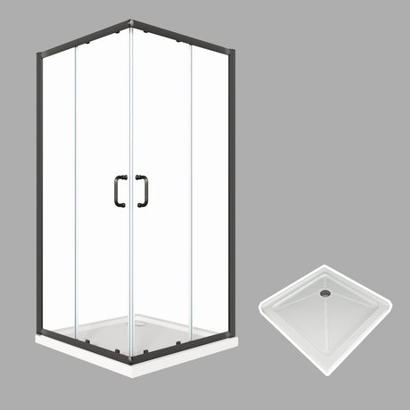 SUNNY SHOWER 36 in. W x 36 in. D x 72 in. H Black Check Corner Entry Enclosure With Sliding Doors