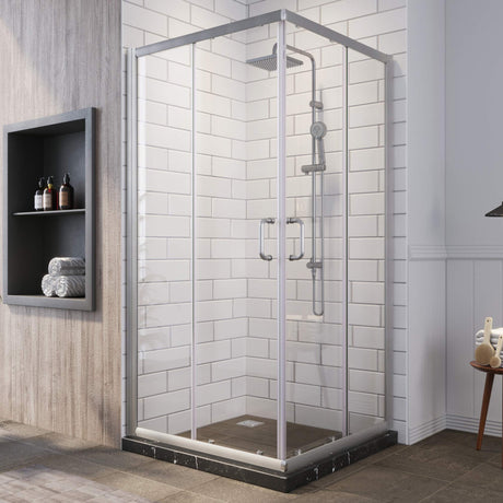 SUNNY SHOWER 36 in. W x 36 in. D x 72 in. H Chrome Finish Corner Entry Enclosure With Sliding Doors