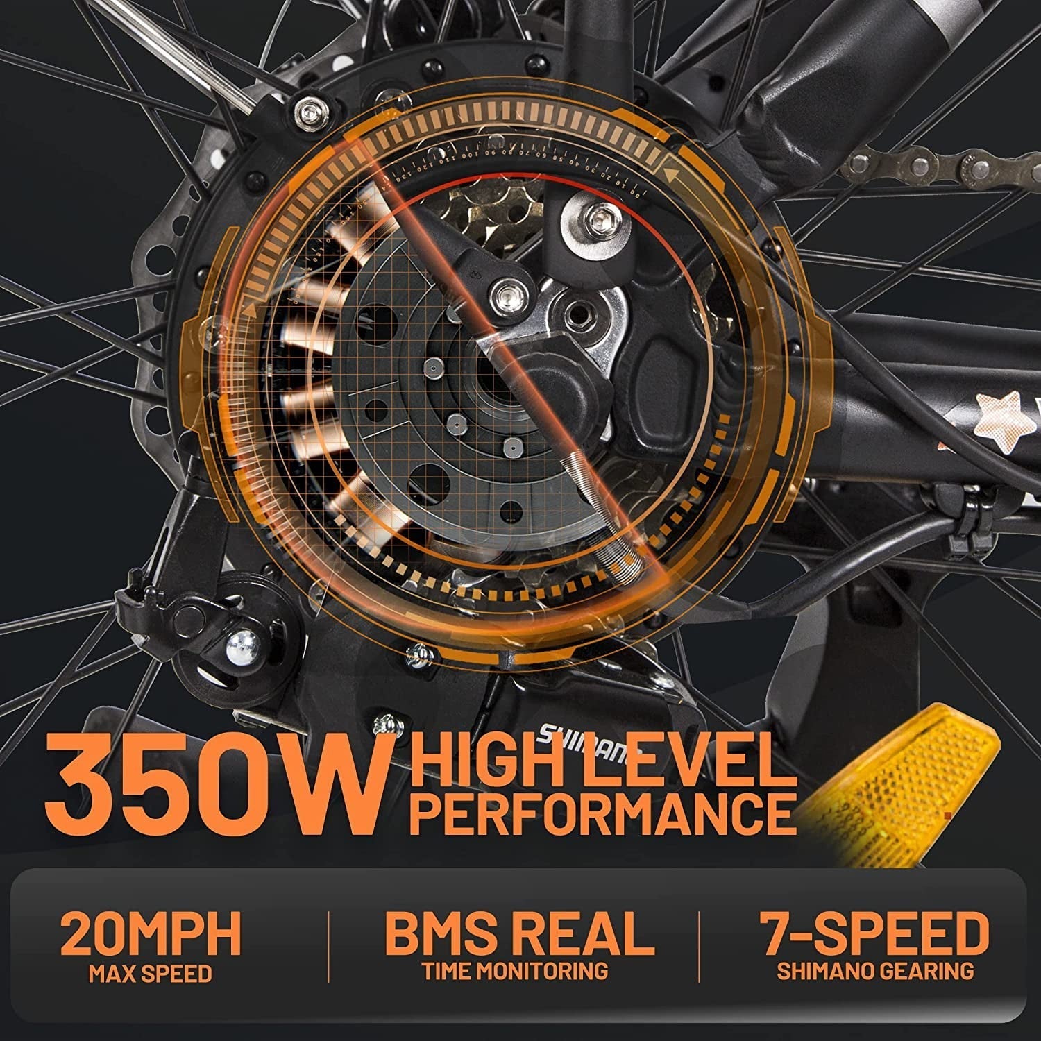 Ecotric E-Ride Electric Bike Trail Riding Ebike Girl Cruiser Foldable 20 inch Wheels 350W 36V Removable Battery 7 Speed City Commuter for Children A-E516646
