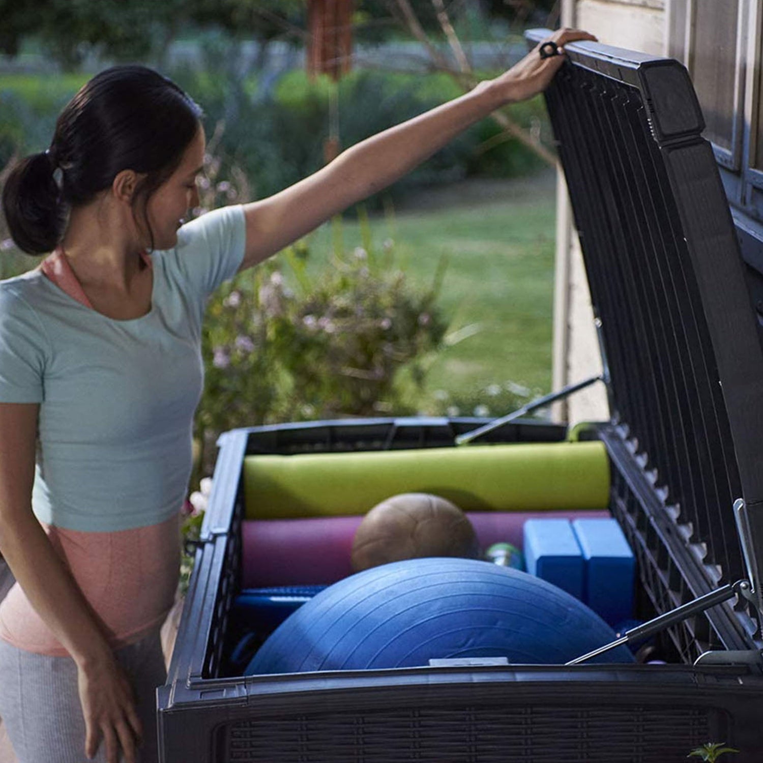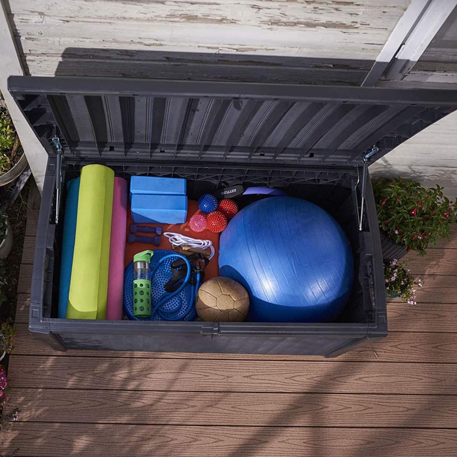 Keter Borneo Rattan Wicker Resin Patio Deck Storage Box Bench, Grey (2 Pack)