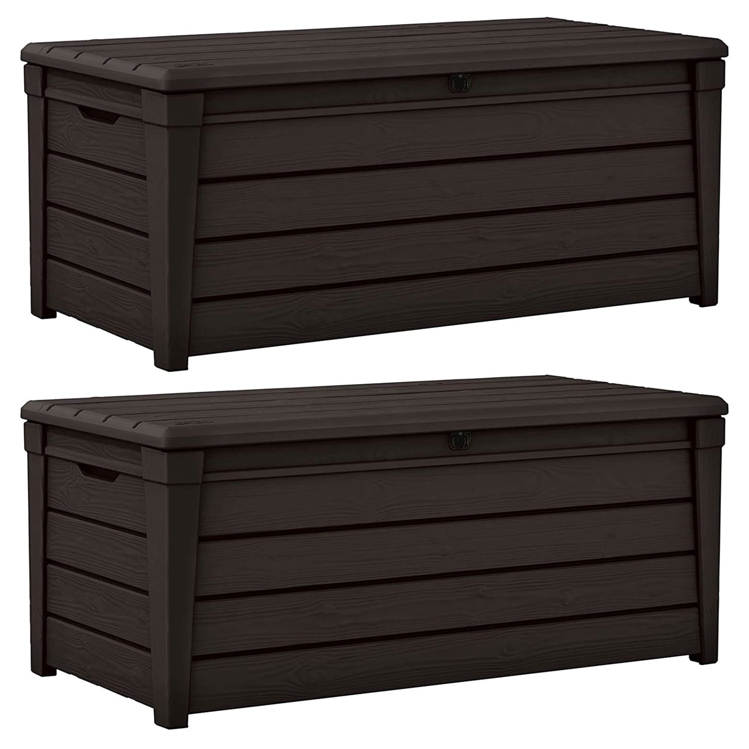 Keter Brightwood Weatherproof Patio Deck Storage Box Bench, Brown (2 Pack)