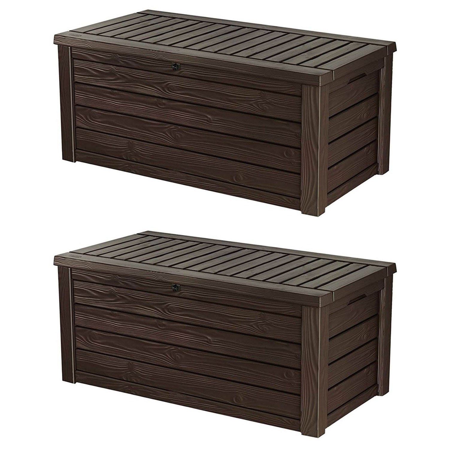 Keter Westwood Outdoor 150 Gal Deck Storage Box for Tools, Brown (2 Pack)