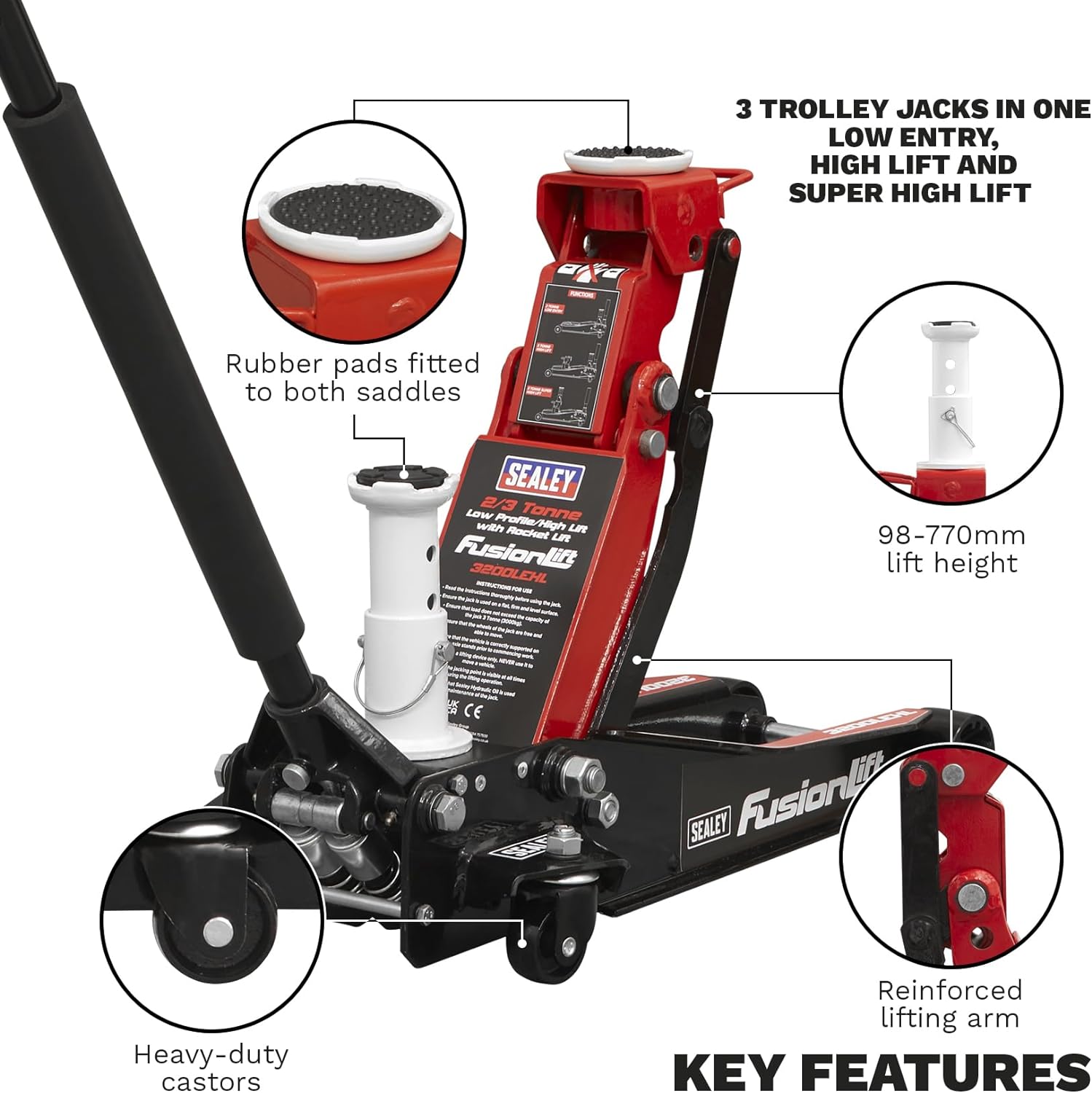 Sealey 2/3 Tonne Trolley Jack Low Profile/High Lift with Rocket Lift - 3200LEHL