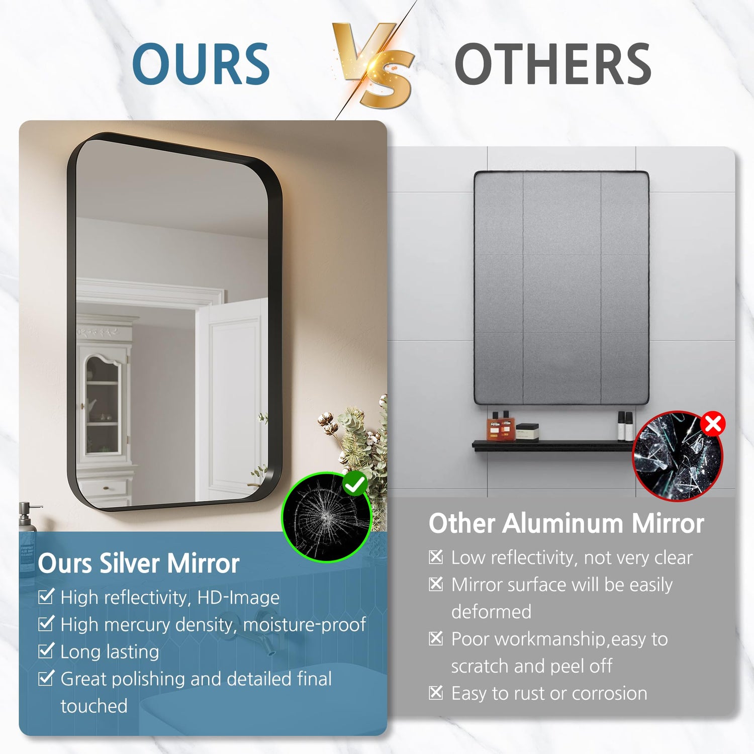 ELEGANT Round Corner Vanity Mirror Wall-Mounted 24 in. W x 36 in. L Brushed Metal