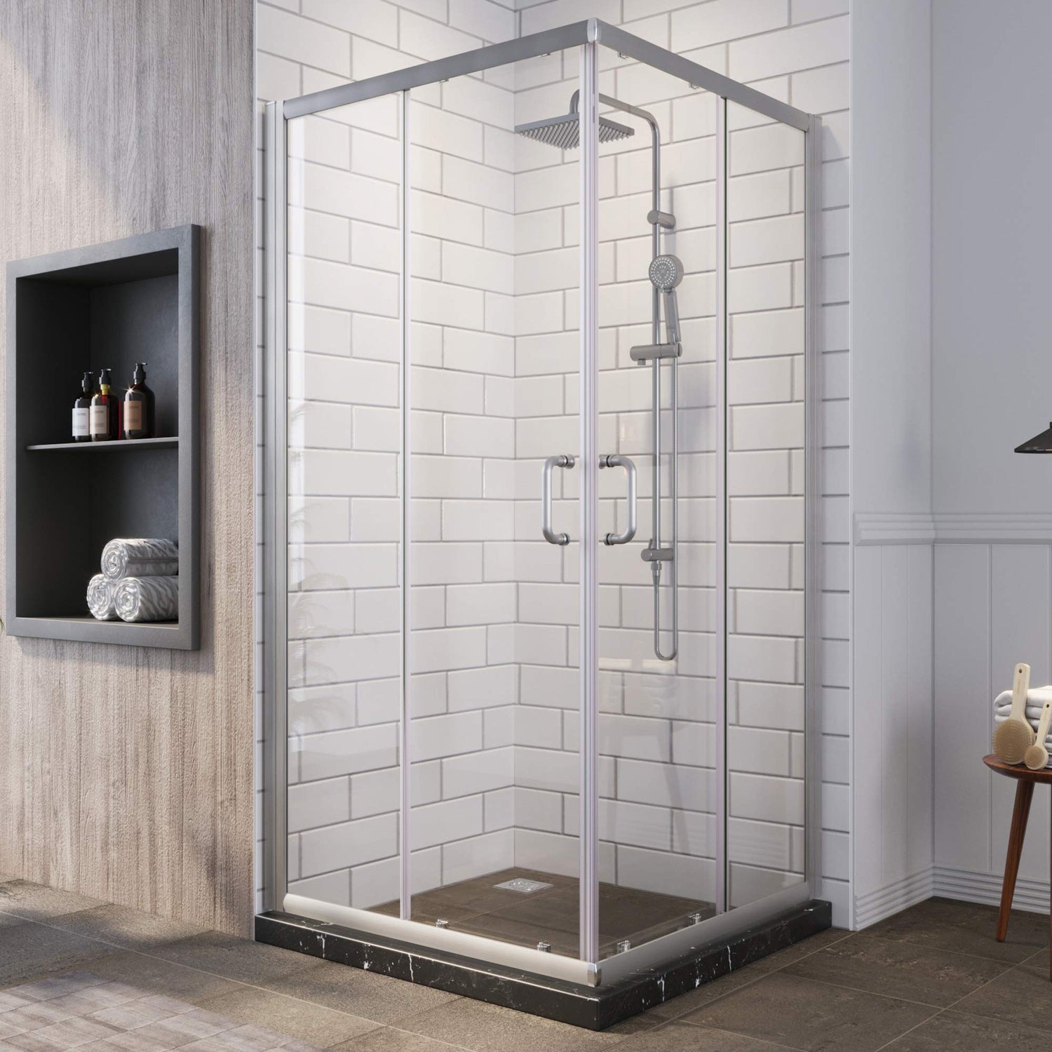 SUNNY SHOWER 36 in. W x 36 in. D x 72 in. H Brushed Nickel Finish Corner Entry Enclosure With Sliding Doors